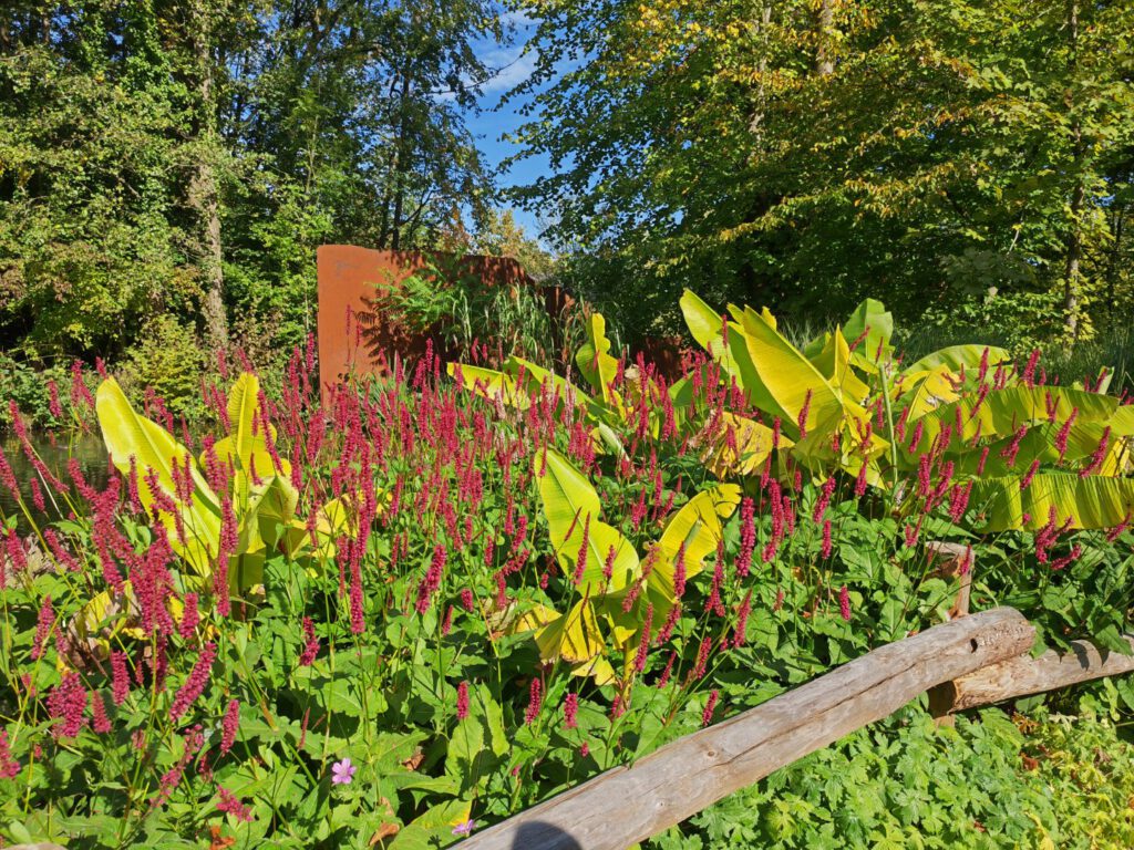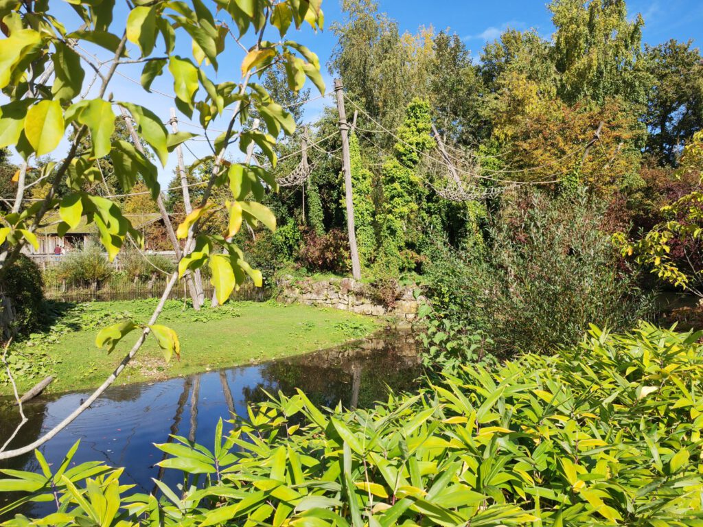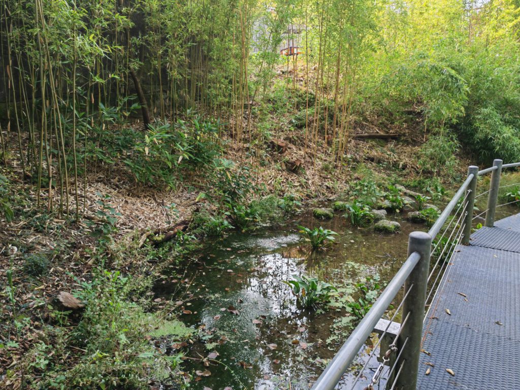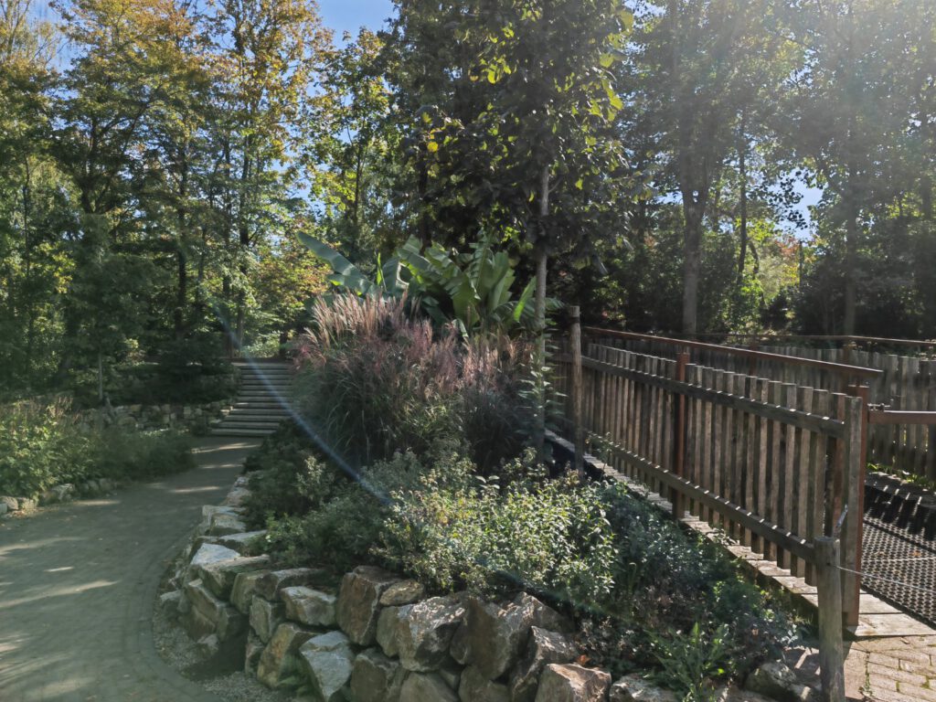 Eher ungewöhnlich beim Gang in den Zoo ist, dass man zunächst ein ganzes Stück geht ohne ein Tiergehege zu sehen. Dafür fällt einem sofort die mit unglaublich viel Liebe und Sachverstand angelegte Anlage auf. Pflanzenvielfalt und Arrangement, sowie die Verwendung von Wasser als gestalterisches Mittel sind – soviel kann ich vorwegnehmen – in der ganzen Anlage auf einem extrem hohen Niveau. Sozusagen der erste WOW-Effekt ganz ohne ein einziges Tier – und das in einem Zoo!