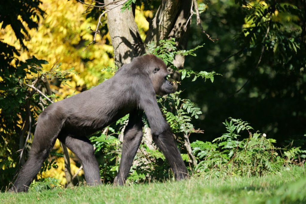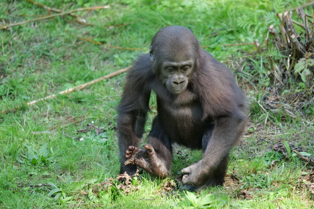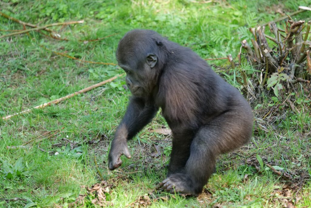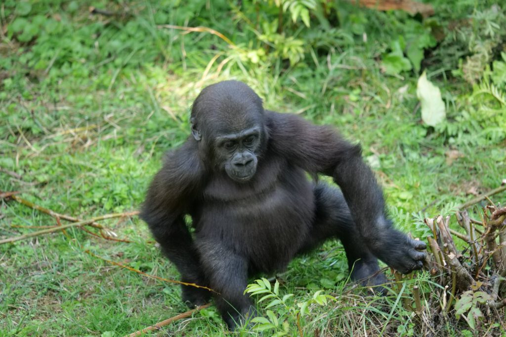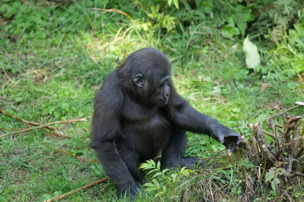 Das Gehege ist gestaltet wie ein kleiner Wald, die Tiere klettern wirklich in den Bäumen und sind oft nur zu hören. Dann plötzlich steht ein kleiner Gorilla im Wasser und schaut heraus. Unglaublich schön.
